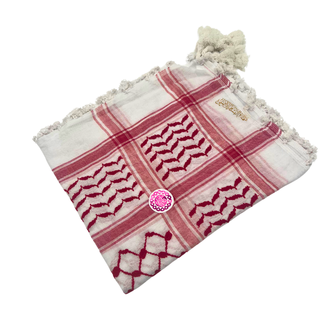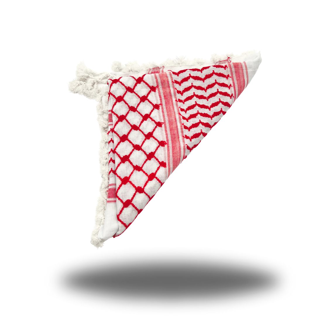 Discover the enduring grace and cultural importance of the authentic Palestinian Keffiyeh, now in white and red. Meticulously crafted from 100% premium cotton, our keffiyeh boasts woven patterns adorned with red embroidery, ensuring a gentle, airy, and resilient accessory suitable for year-round wear.