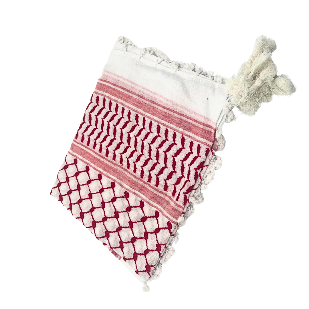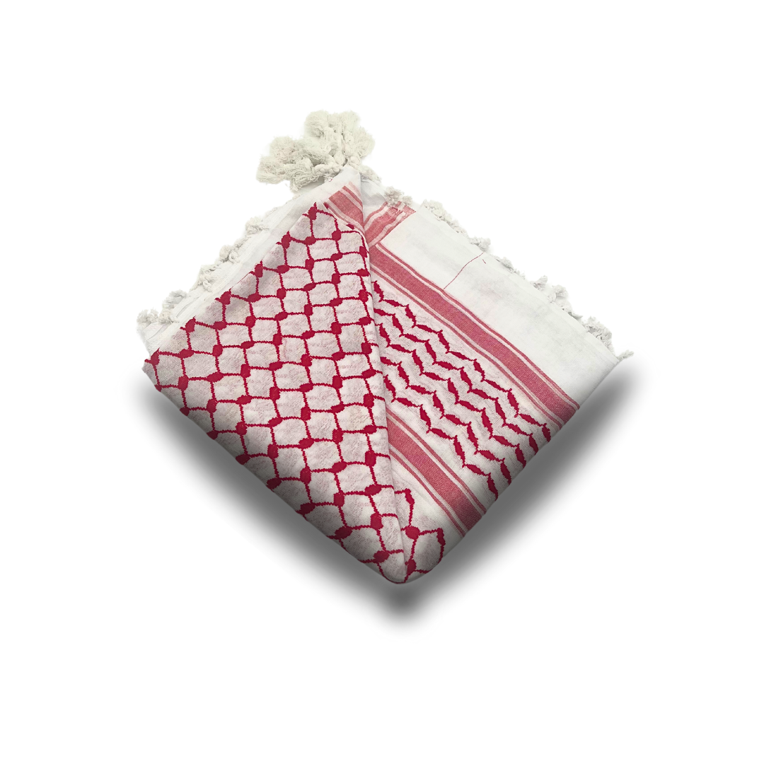 Authentic Cotton Palestinian Keffiyeh - Red and White classic with tassels